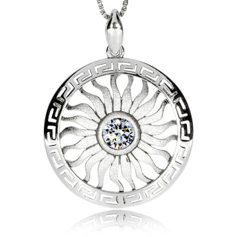Stříbrný přívěsek s krystalem Swarovski - Slunce lemované řeckým vzorem