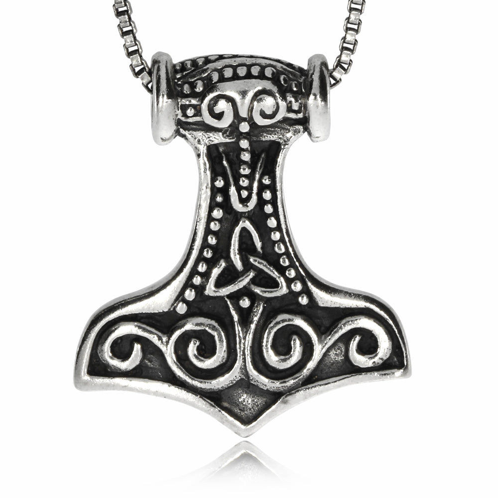 Thorovo kladivo jako přívěsek z patinovaného stříbra je motivem pro muže i ženy. Klasický tvar Thorova kladiva je ozdoben keltskými smyčkami. Starostříbrná patina dává vyniknout ornamentům.