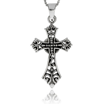 Jeden z nejpoužívanějších talismanů a symbolů v celé naší kultuře je bezesporu kříž. Tento středně velký přívěsek zobrazuje jemně zdobený motiv kříže ve starostříbrné úpravě, díky které působí starodávně a autenticky. Uprostřed kříže si můžete všimnout malého kruhu, který symbolizuje celost, jednotu a koloběh života.