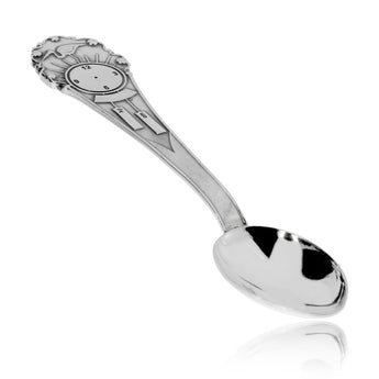 Pěkný dárek pro miminko a jeho maminku - stříbrná lžička s čápem a hodinami, na které je možné nechat vyrýt přesný čas narození.