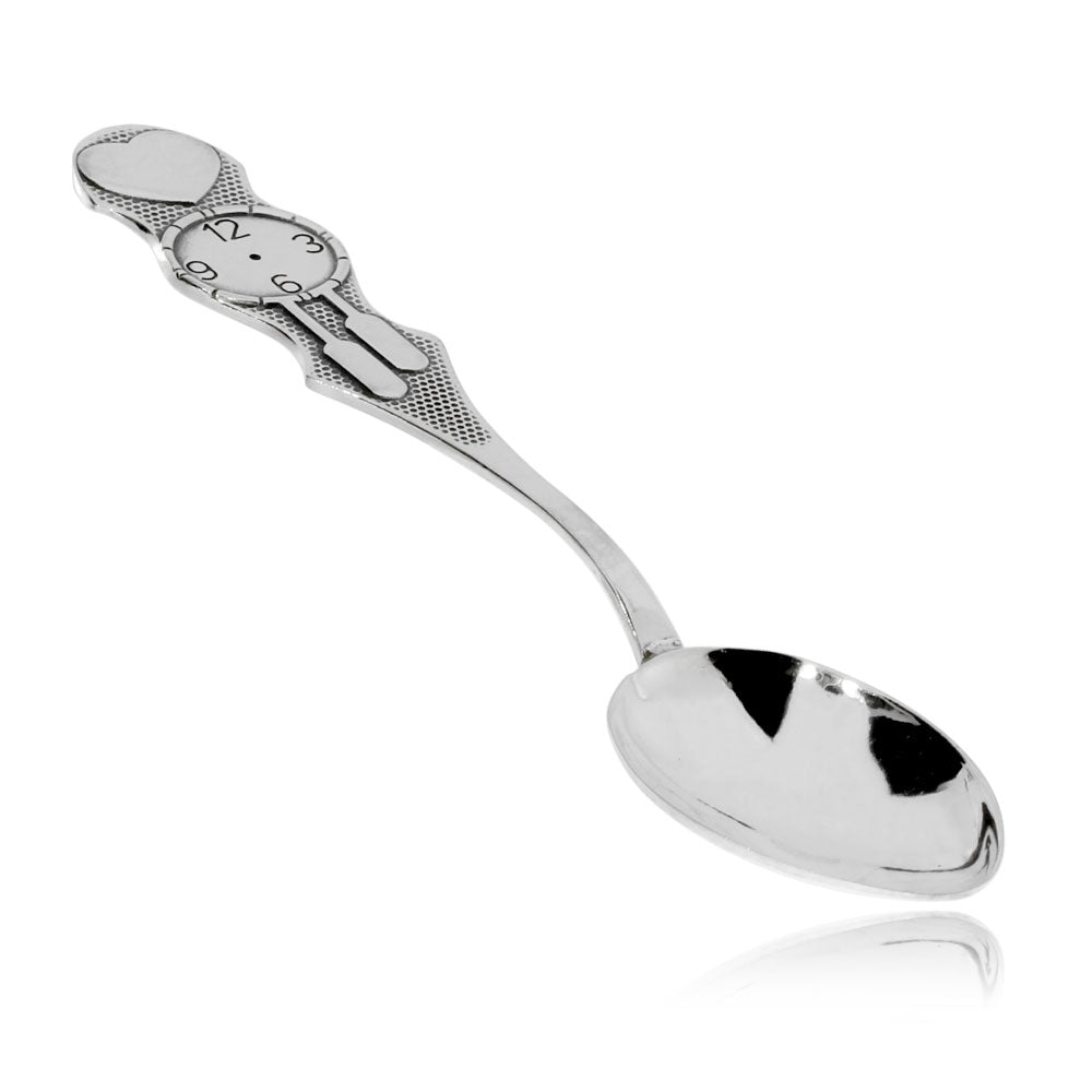 Stříbrná lžička pro miminko s hodinami a srdcem