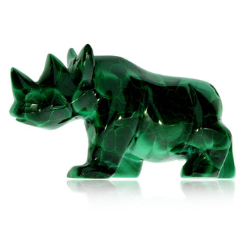 Pěkně opracovaná figurka jednorořce vyrobená z malachitu, oblíbeného a poměrně měkkého nerostu s pronikavě zelenou barvou, kterou ozvláštňují vrstvy vytvářející pruhy v různých odstínech zelené, poslouží jako milý dárek. Nosorožec se v některých kulturách využívá jako symbol poskytující ochranu.