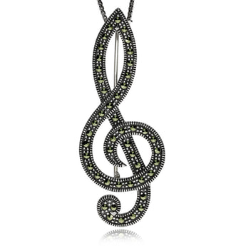 Stříbrná markazitová brož - houslový klíč