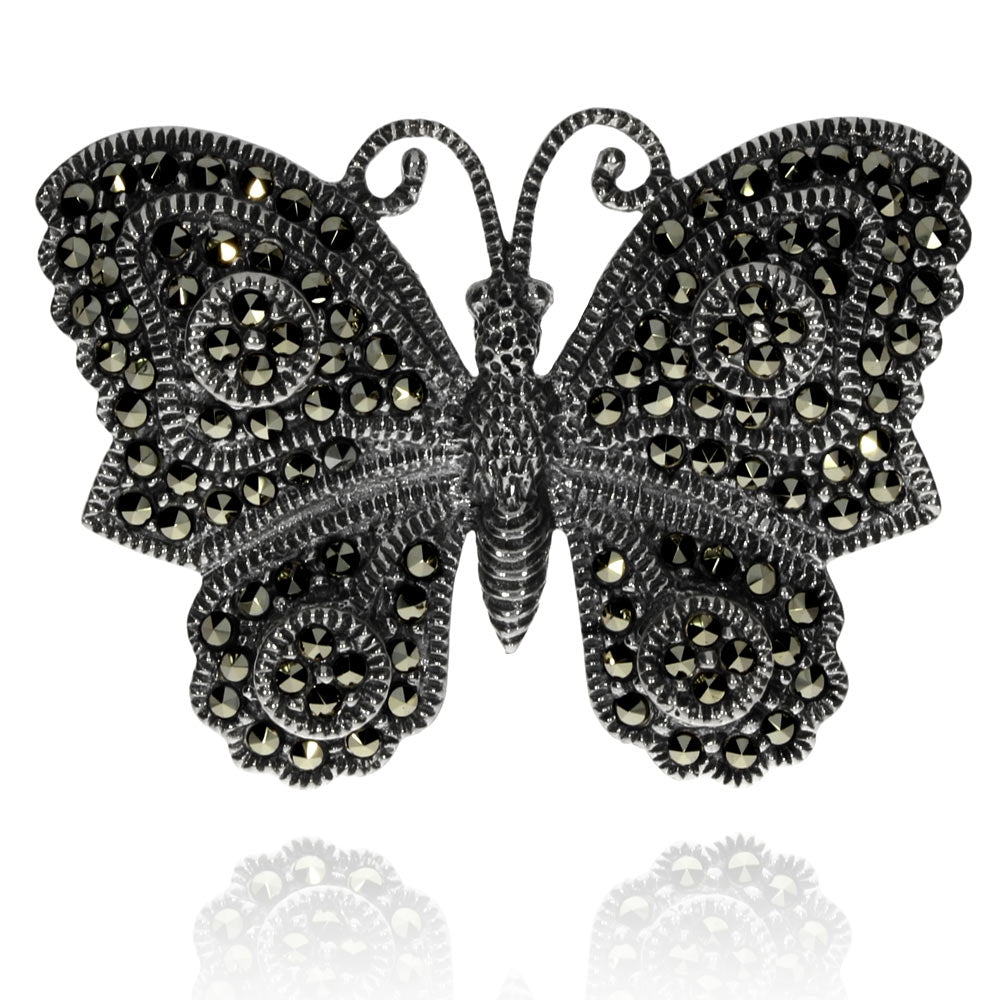 Stříbrná brož ve tvaru motýla zdobená markazity