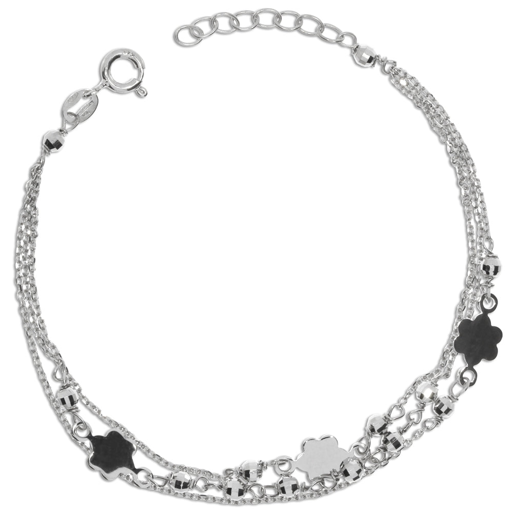 Stříbrný náramek zdobený na středu drobnými motivy květu