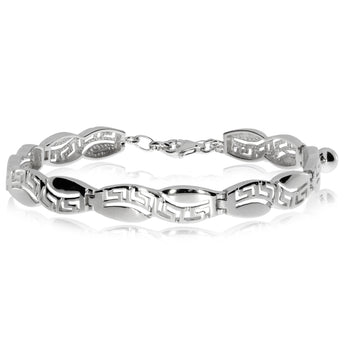 Stříbrný rhodiovaný náramek zdobený meandrem