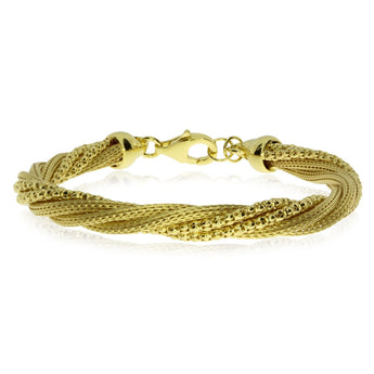 Stříbrný náramek ve žlutém zlacení - Splétaný vzor na karabinu