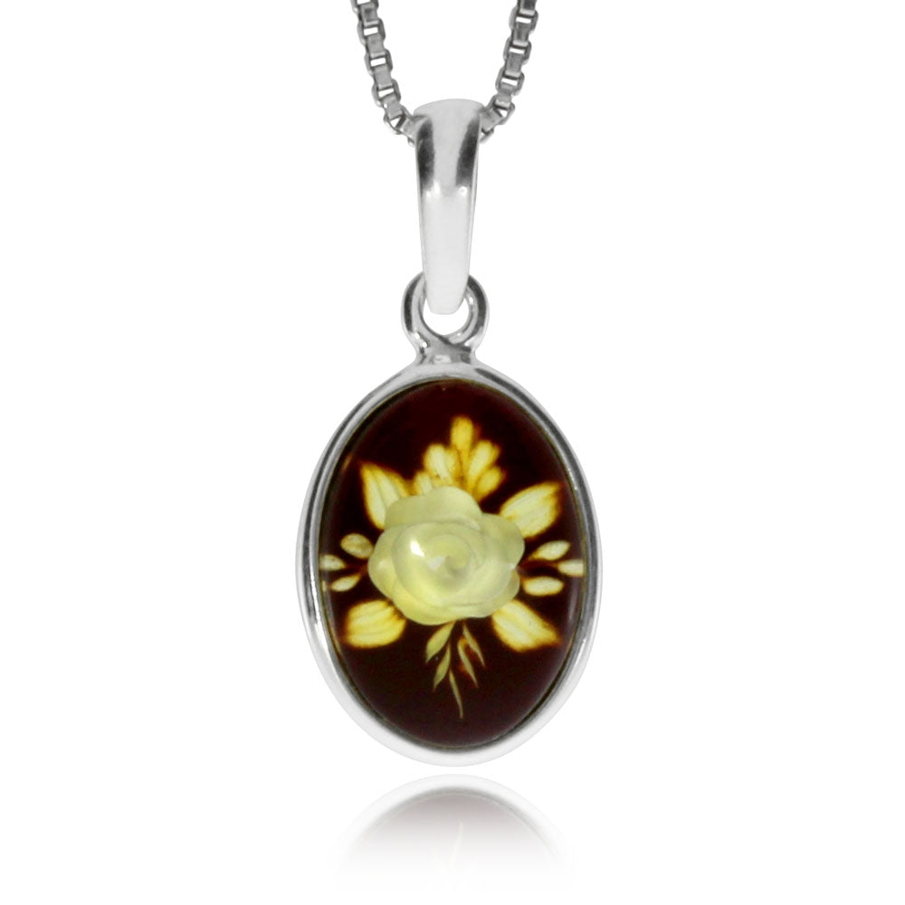 Stříbrný přívěsek - Jantar oválného tvaru s glyptikou