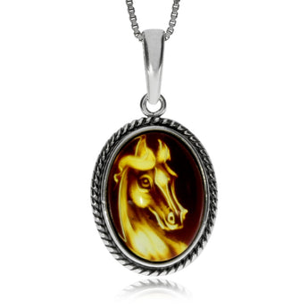 Stříbrný přívěsek - Hlava koně v jantaru (glyptika