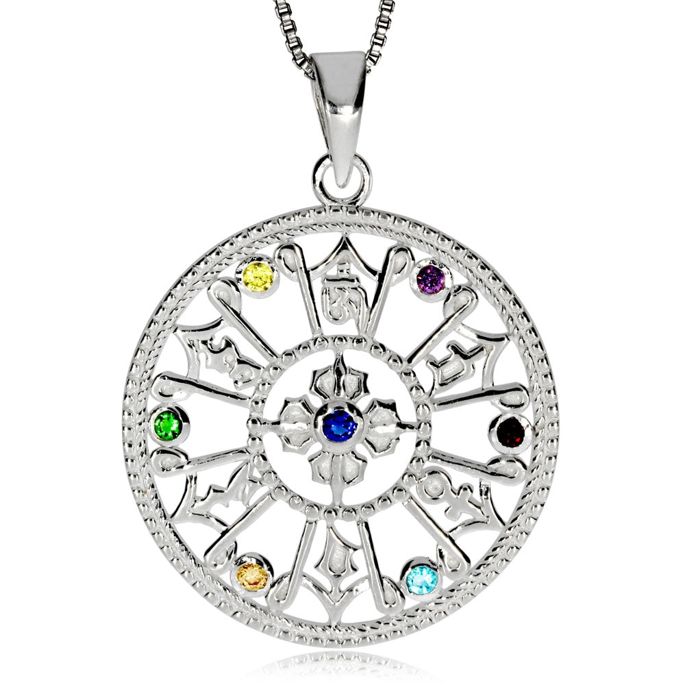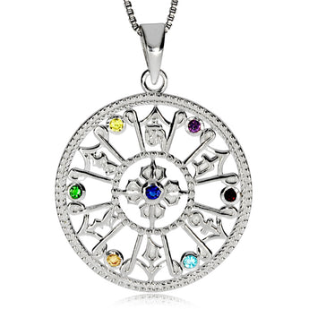 Stříbrný přívěsek - Kruh se symboly a kameny