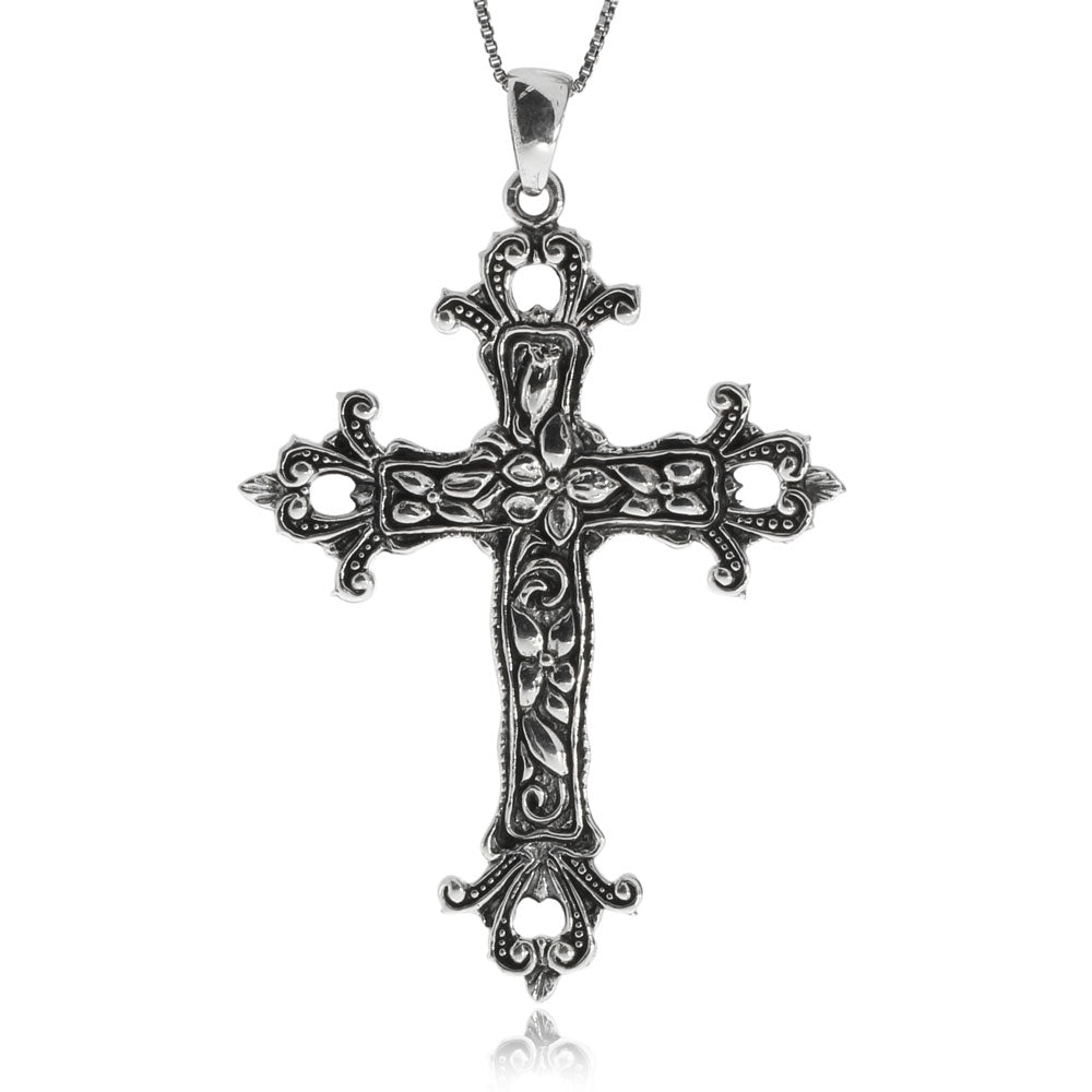 Stříbrný přívěsek - Starostříbrný kříž zdobený květy