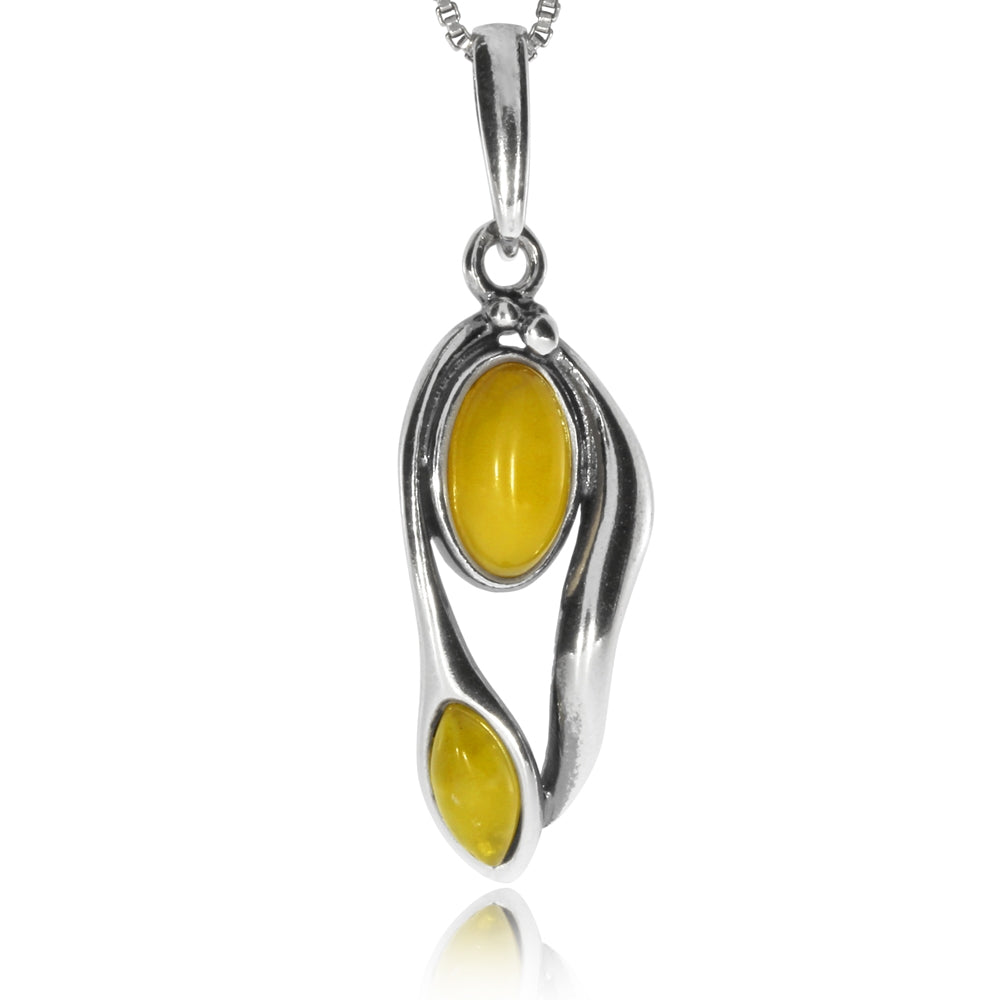 Stříbrný přívěsek s jantarovými oválky žluté barvy