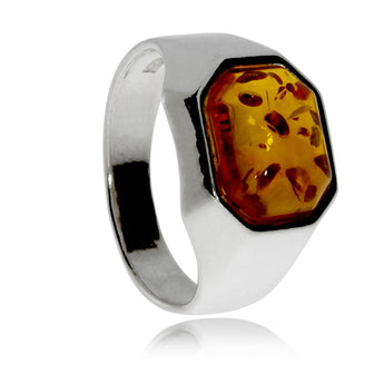 Stříbrný prsten zdobený jantarem - Masivní vzhled s kamenem obdélného tvaru
