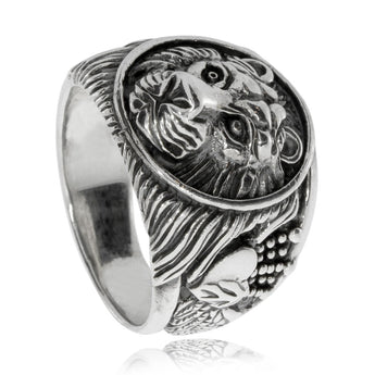 Stříbrný prsten - Hlava lva v kruhu