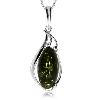 Podlouhlý stříbrný přívěsek s výrazným oválným jantarem je přitažlivý neotřelým zpracováním zdobných detailů - jemných linií zakončených drobnými kuličkami. Nepravidelný tvar těchto zdobných prvků bude vyhovovat ženám, které mají rády osobité šperky vycházející za hranice zažitých vzorů. Jemné zpracování stříbrný částí šperku se prolíná i do úchytu na návlek, jehož připojení k přívěsku je samo o sobě ozdobou. Tento šperk může vyhovovat jak pro běžné nošení, tak bude pěkně zdobit i při slavnostnějších příležitostech.