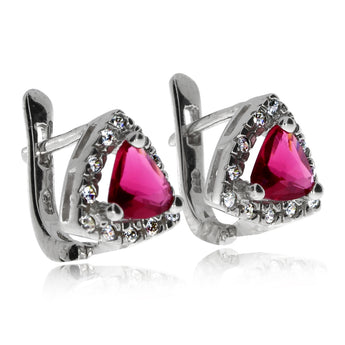 Stříbrné náušnice se zirkony (cubic zirconia), červený středový trojúhelník
