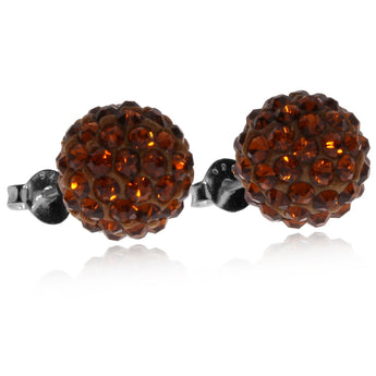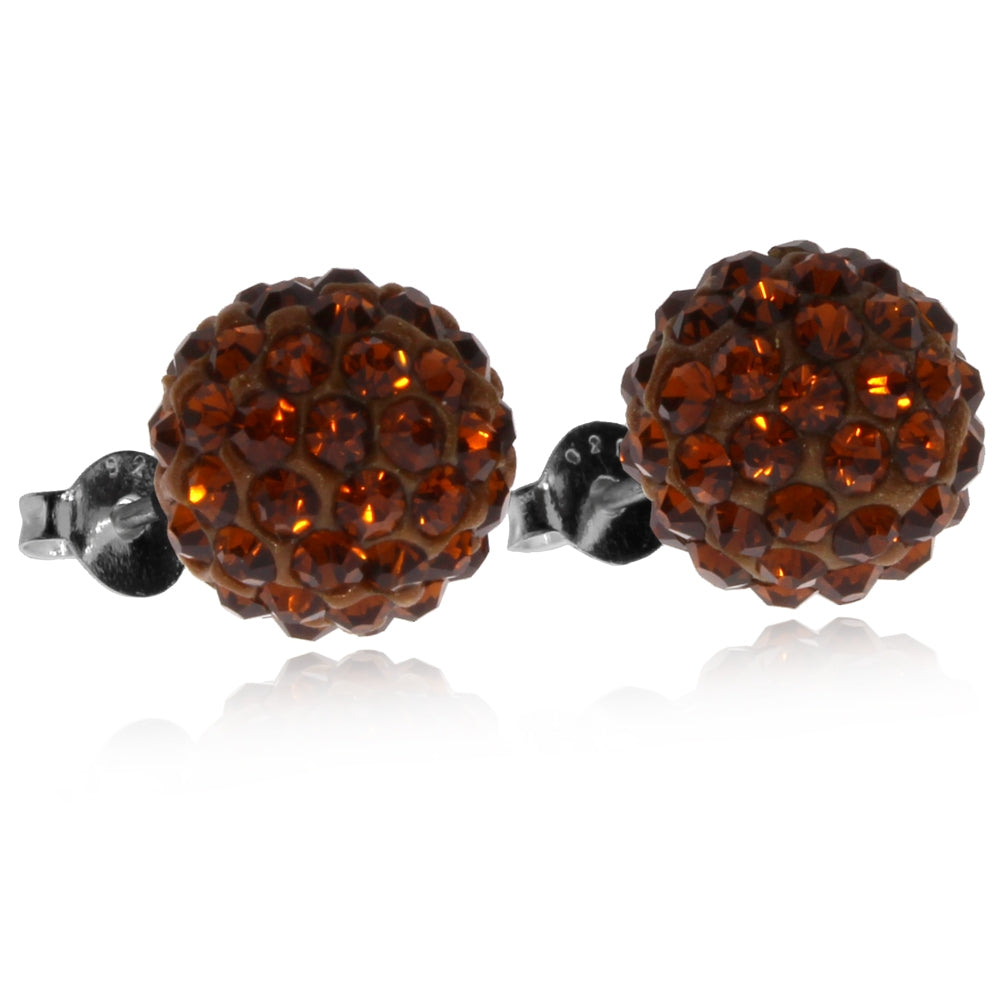 Dámské stříbrné náušnice plné osobitého půvabu skvěle ozdobí jemnou ženskou tvář a budou působit elegantně a vybraně při každé příležitosti. Hnědé kulaté náušnice jsou poseté drobnými krystaly se zlatavými odlesky.