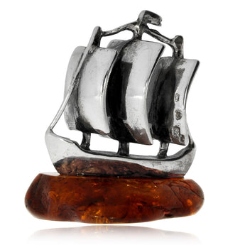 Originální figurka, která bude skvělým dárkem pro každého, koho okouzluje moře, dobrodružství a má neustále vítr v plachtách. Figurka je vyrobená ze stříbra se starostříbrnou úpravou a doplňuje ji zlatavý jantarový podstavec.