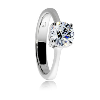 Jednoduchý a velice krásný stříbrný prsten zdobí velký syntetický kámen cubic zirconia, někdy nesprávně nazývaný zirkon. Ten vyniká svou vysokou odolností a výrazným třpytem. Zasazený je do stříbra s rhodiovaným povrchem, které také zvyšuje jeho lesk a odolnost. Šperk se tedy hodí i jako cenově příznivý zásnubní prsten.