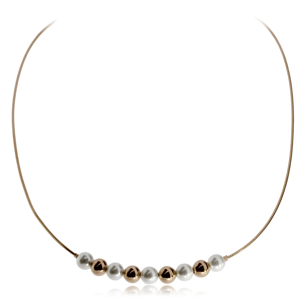 Stříbrný nárhdelník s kuličkami a syntetickými perlami