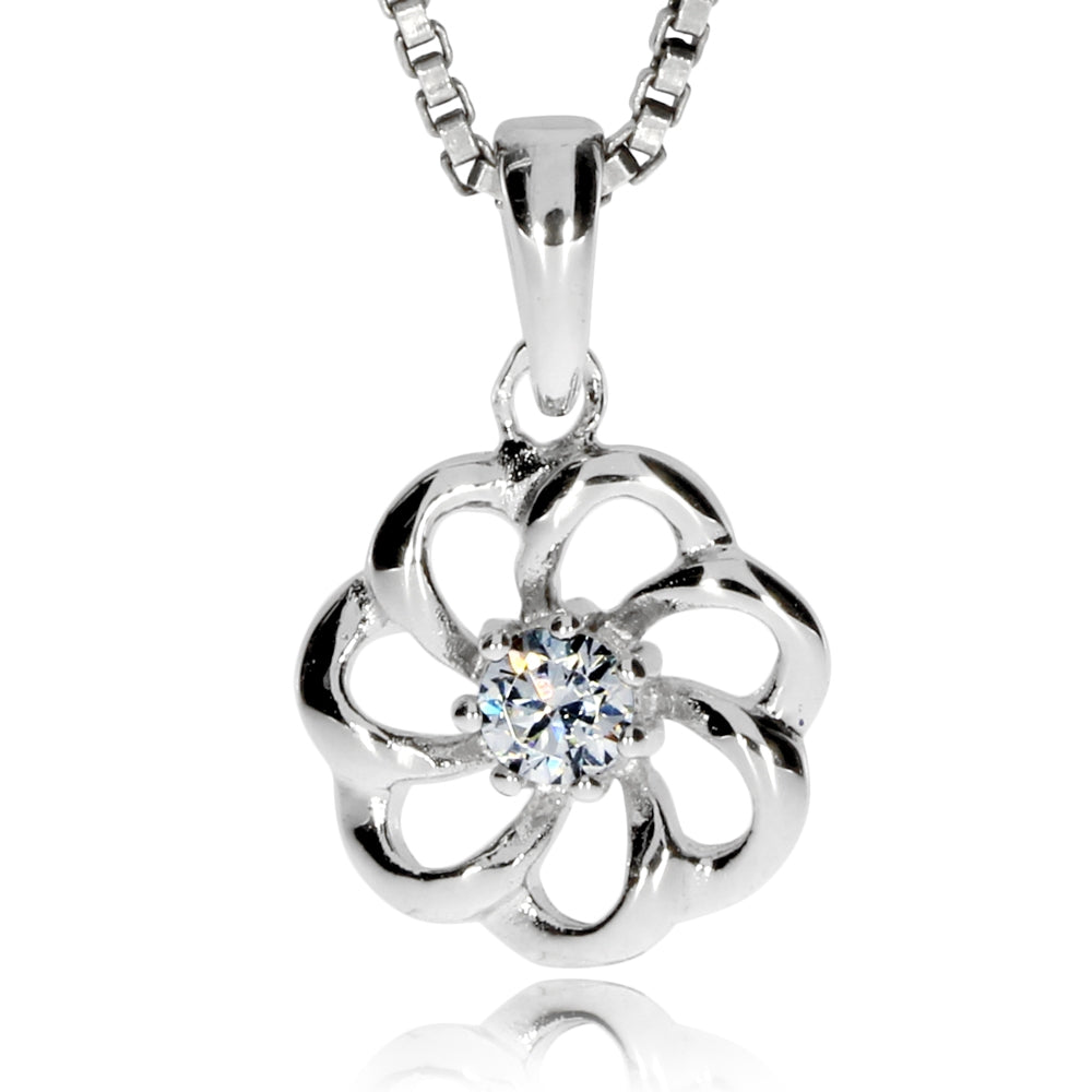 Stříbrný přívěsek - Drobná kytička s kamínkem (cubic zirconia