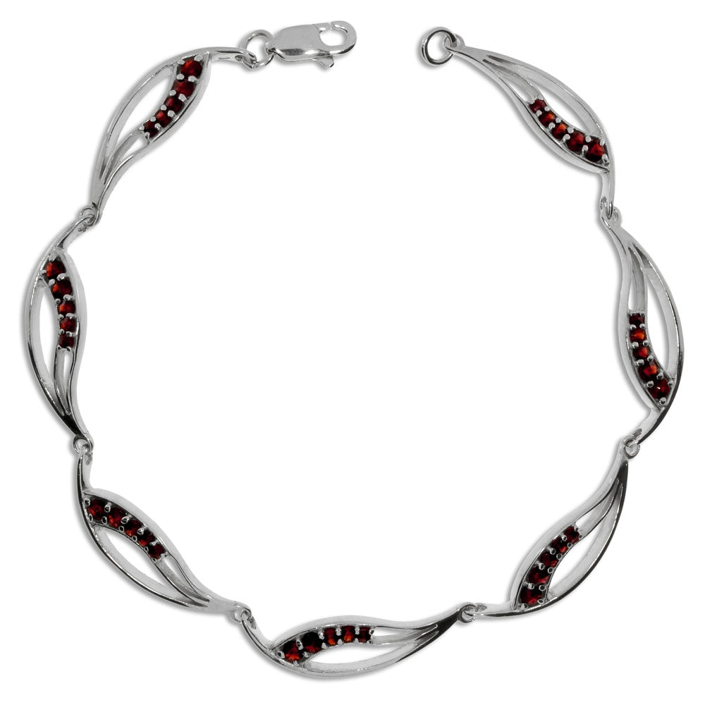 Působivě jednoduchý náramek vyrobený z rhodivaného stříbra je decentně osazen českými granáty broušenými kulatým hvězdovým brusem. Články náramku mají elegantní motiv, který je možné v nabídce nalézt i u dalších typů šperků a vytvořit si skvělou soupravu šperků. Zapínání náramku zajišťuje pevná karabina do očka. V případě potřeby je možné prodloužit délku 19 cm řetízkem. Dámský náramek je dodáván s certifikátem výrobce - klenotnického družstva umělecké výroby Granátu Turnov a v krabičce s jeho logem.