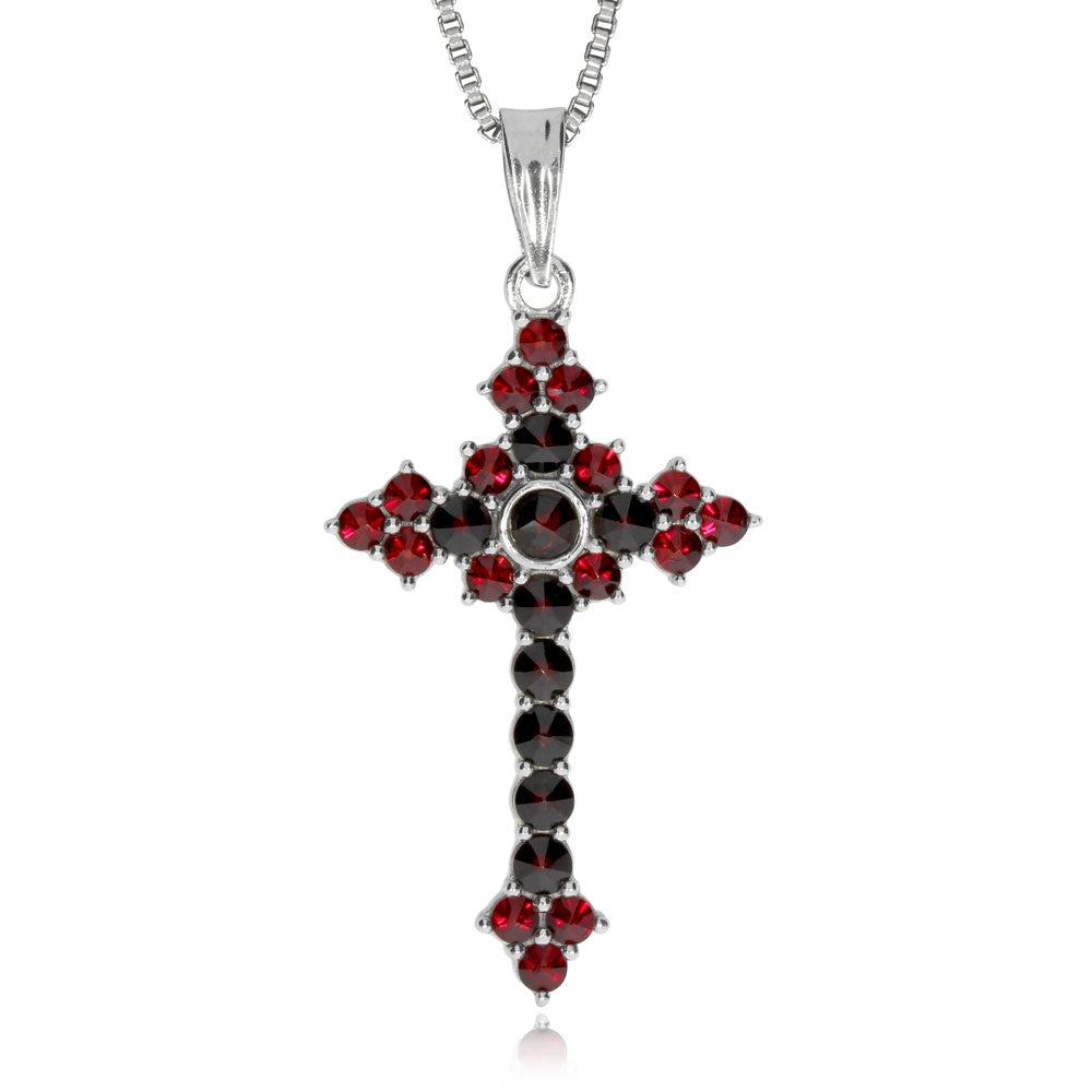 Stříbrný přívěsek - Křížek s českými granáty, Granát Turnov
