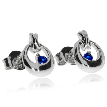 Pěkně a jednoduše zpracované dámské náušnice bodového typu, které tvoří zdobná kruhová linie, do které je zasazený modrý kámen syntetického původu. Náušnice jsou vyrobené ze zářivého a krásně lesklého rhodiovaného stříbra.