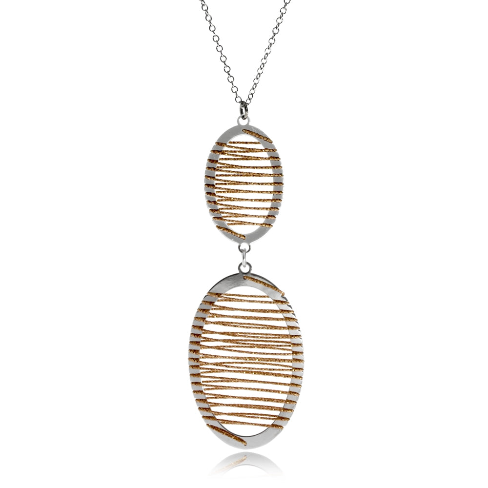 Stříbrný náhrdelník - Obtáčené ovály s růžovým zlacením na stříbře